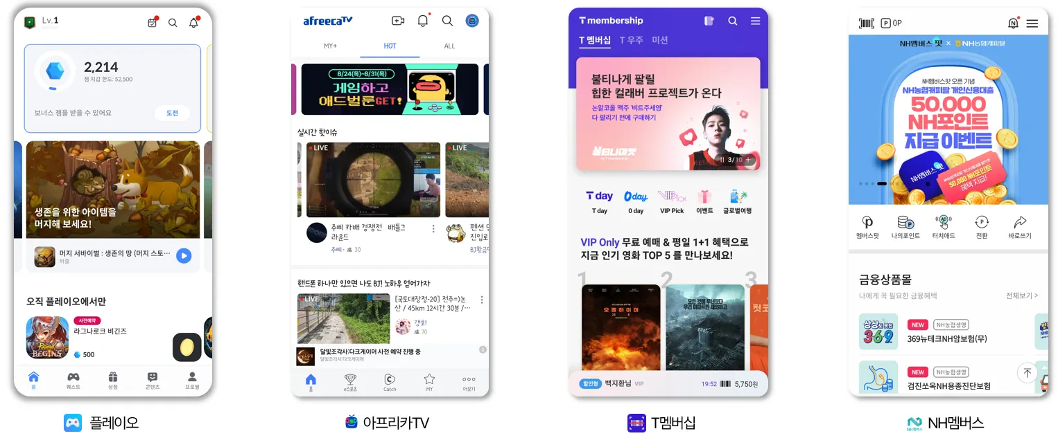 T멤버십, KB PAY, 레뷰(REVU), 아하(a-ha), 모바일이즐(캐시비), 플레이오, 캐시워크, NH멤버스 등 다양한 카테고리의 APP사들이 그린피 오퍼월과 함께하고 있습니다.