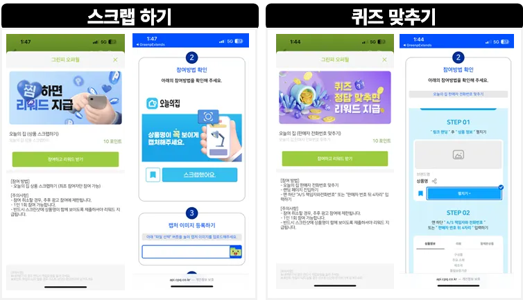 그린피는 네이버를 넘어 다양한 앱으로 퀴즈형·참여형 상품을 확장하고 있습니다.
